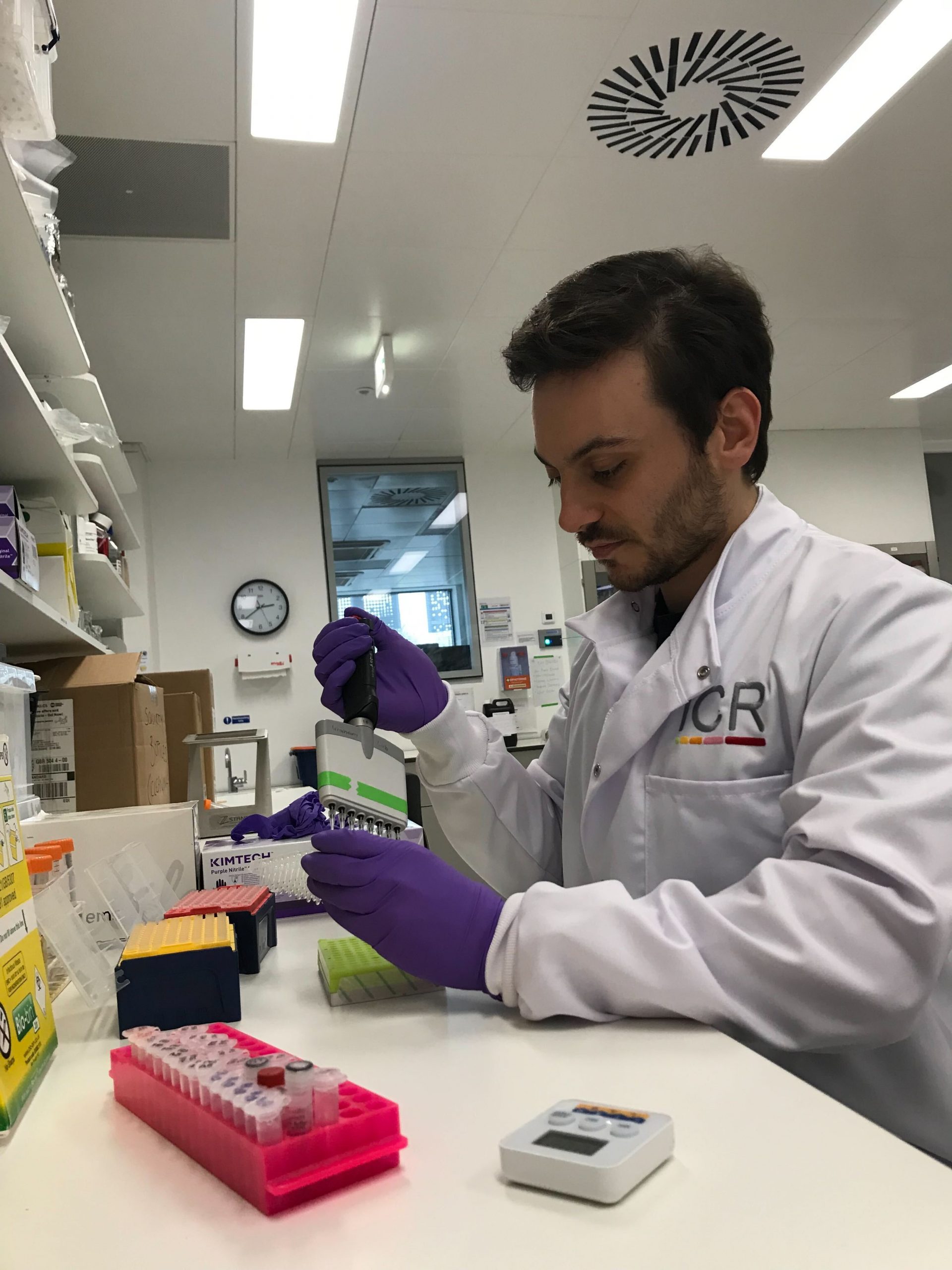 Kane, is a PhD student in Professor Graham’s group at the ICR. Funded by Bowel Research UK, and also supported by funding from 40tude Curing Colon Cancer, Kane is working in collaboration with Professor Ailsa Hart and her team at St Mark’s to research the development of the early detection blood test.